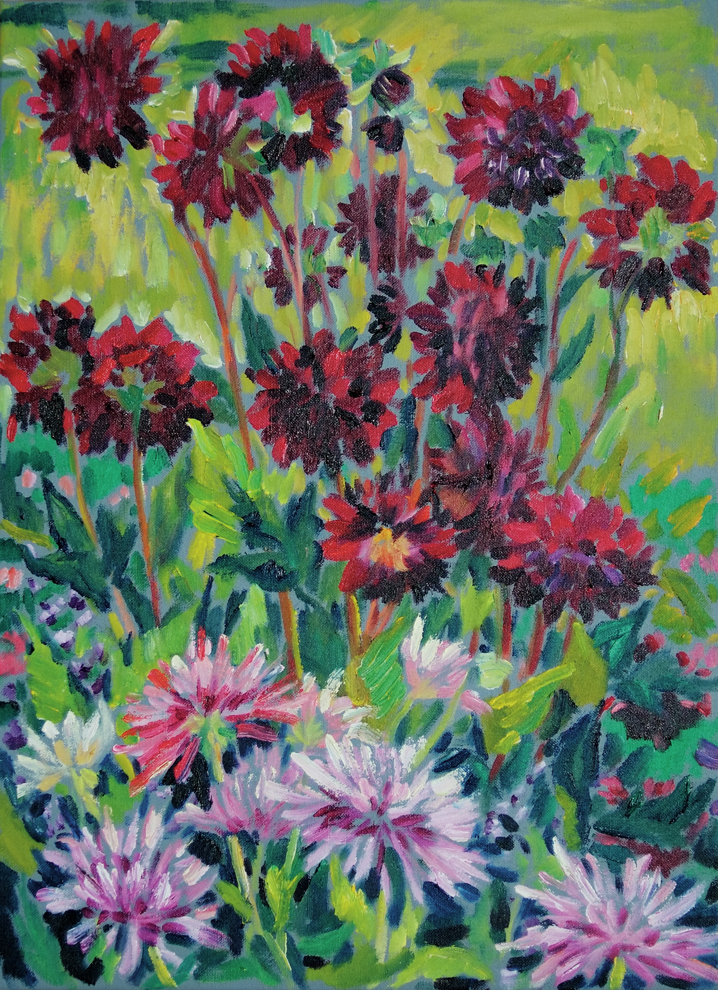 2011 Rosa und rote Dahlien