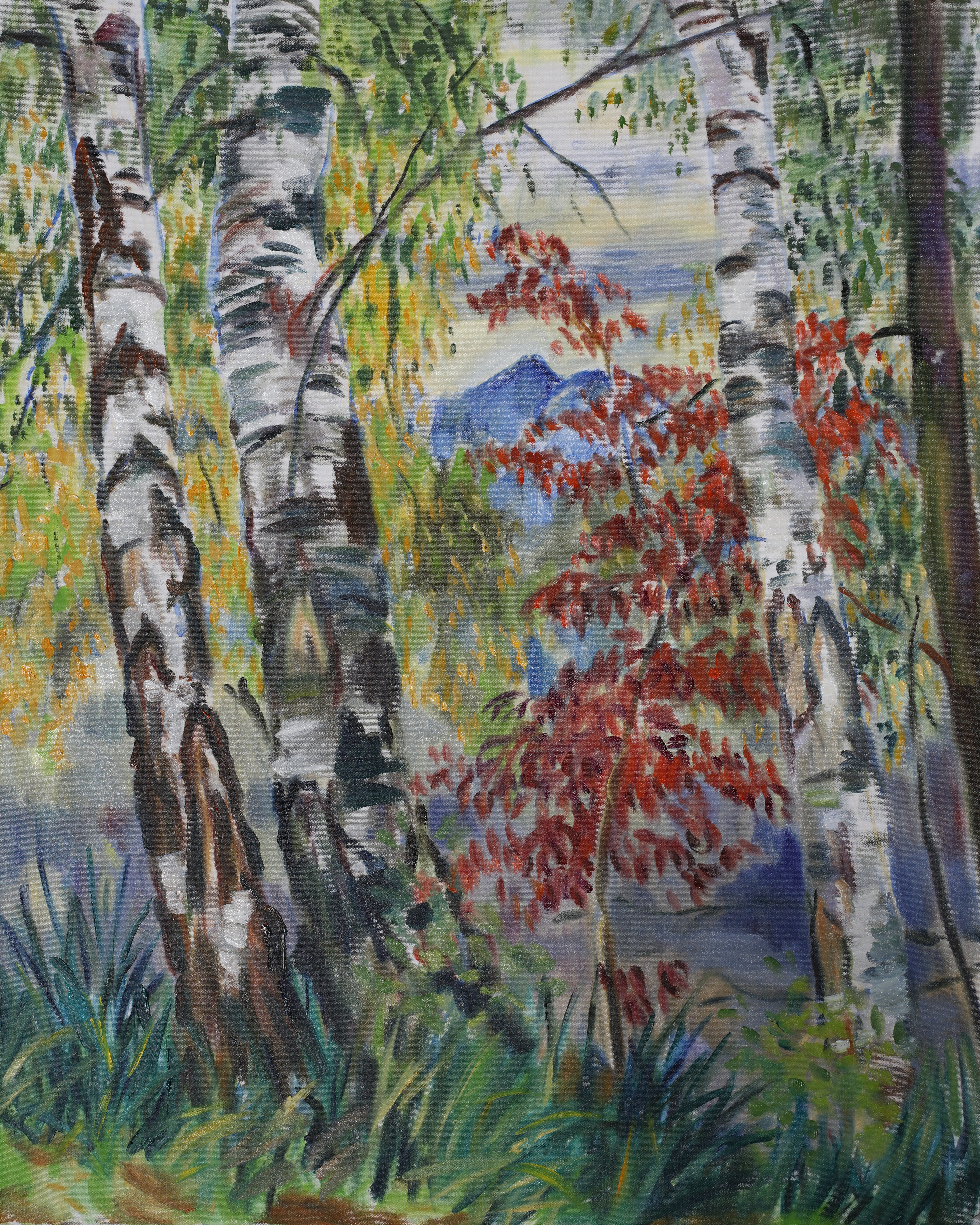 Birken und Herbstlaub